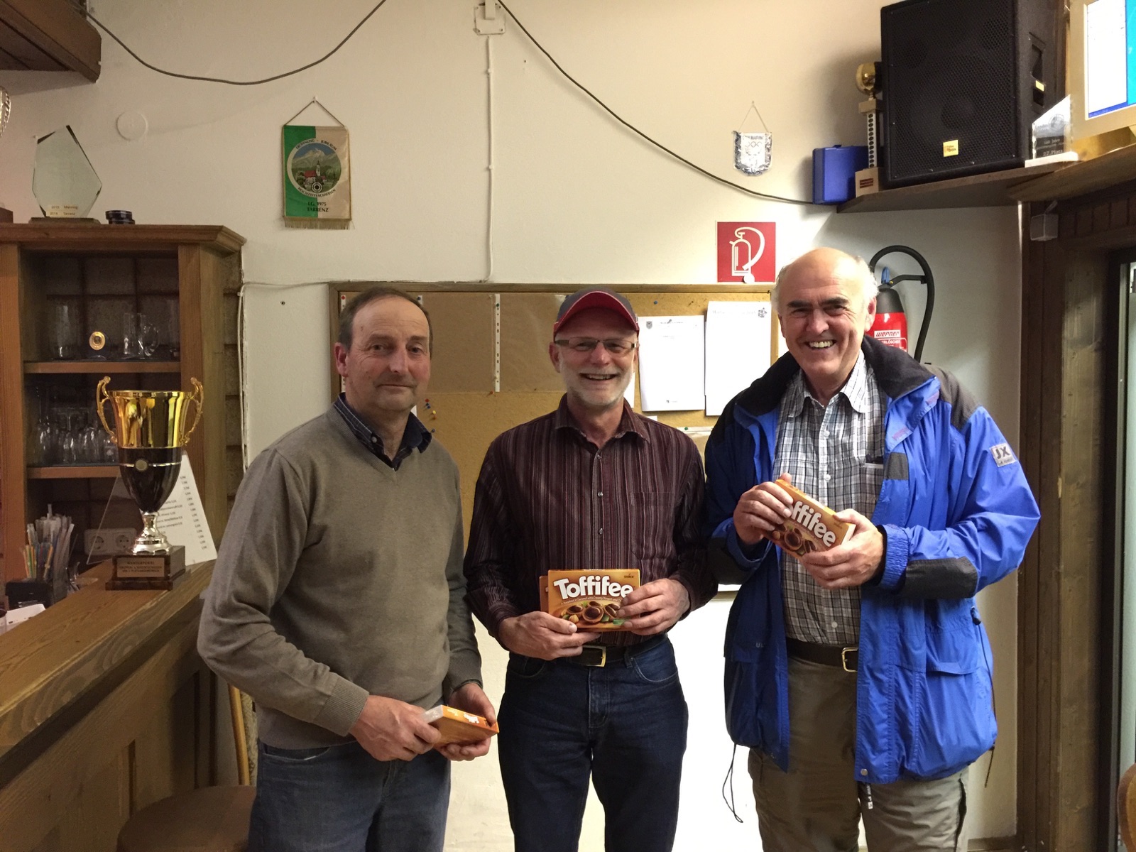 Lediglich 11 Mannschaften meldeten sich heuer bei diesemDie Berwieser Jager (v.l.): Reini Peimpolt, Sieglinde Losch, Christian Marthe, Pepi Widauer traditionsreichen Bewerb an. Trotzdem wird dieses Schießen als das Gruppenschießen mit den höchsten Ergebnissen in die Annalen eingehen. Sechs Schützen erzielten die volle Ringzahl von 200 Punkten. Bei den Barwieser Jager war von den abgegebenen 80 Schüssen nur einer nicht in der Zehn. Mit 799 Ringen führten sie nach der Qualifikation souverän die Wertung an. Mit Respektabstand qualifizierten sich zwei Mannschaften des Trachtenvereins Mieming und der Stockschützen und jeweils eine Mannschaft der Schützenkompanie Mieming, der Musikkapelle Obsteig und des Kleintierzuchtvereins für das Finale. Jeweils vier Schützen einer Mannschaft müssen nacheinander ihre Nervenstärke beweisen. Die Barwieser Jager ließen nie einen Zweifel an ihrer Vormachtstellung aufkommen. Nur Pepi Widauer, der als letzter Schütze ran musste, strapazierte bei einem Schuss die Nerven seiner Mannschaftskollegen extrem, als er in der letzten Sekunde seinen Schuss abgab. Eine Sekunde später und der Sieg wäre dahin gewesen. So zitterte er noch eine 9,9 auf die Scheibe, was für den Sieg reichte. Dahinter klassierte sich die erste Mannschaft der Plattler. Der dritte Platz ging an die Schützenkompanie Mieming.